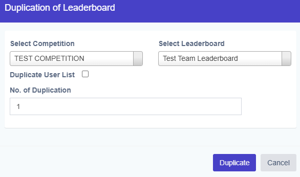 - Duplicate: Use this option to create copies of an existing leaderboard. You can duplicate a leaderboard multiple times, and each new leaderboard will be created with the same configuration as the original.