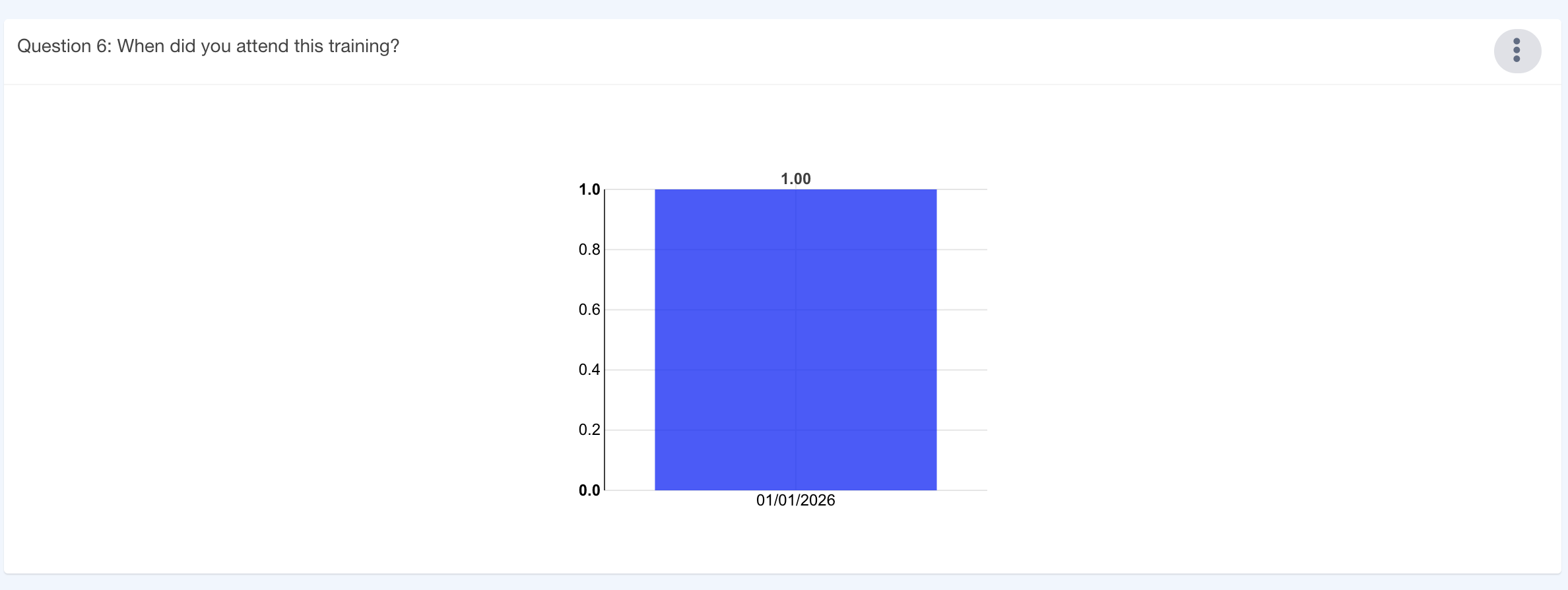 The graph related to this question type is also displayed using a bar chart. The date is shown on the x-axis and the percentage scale is shown on the y-axis. The percentage of response is indicated with color as shown below.