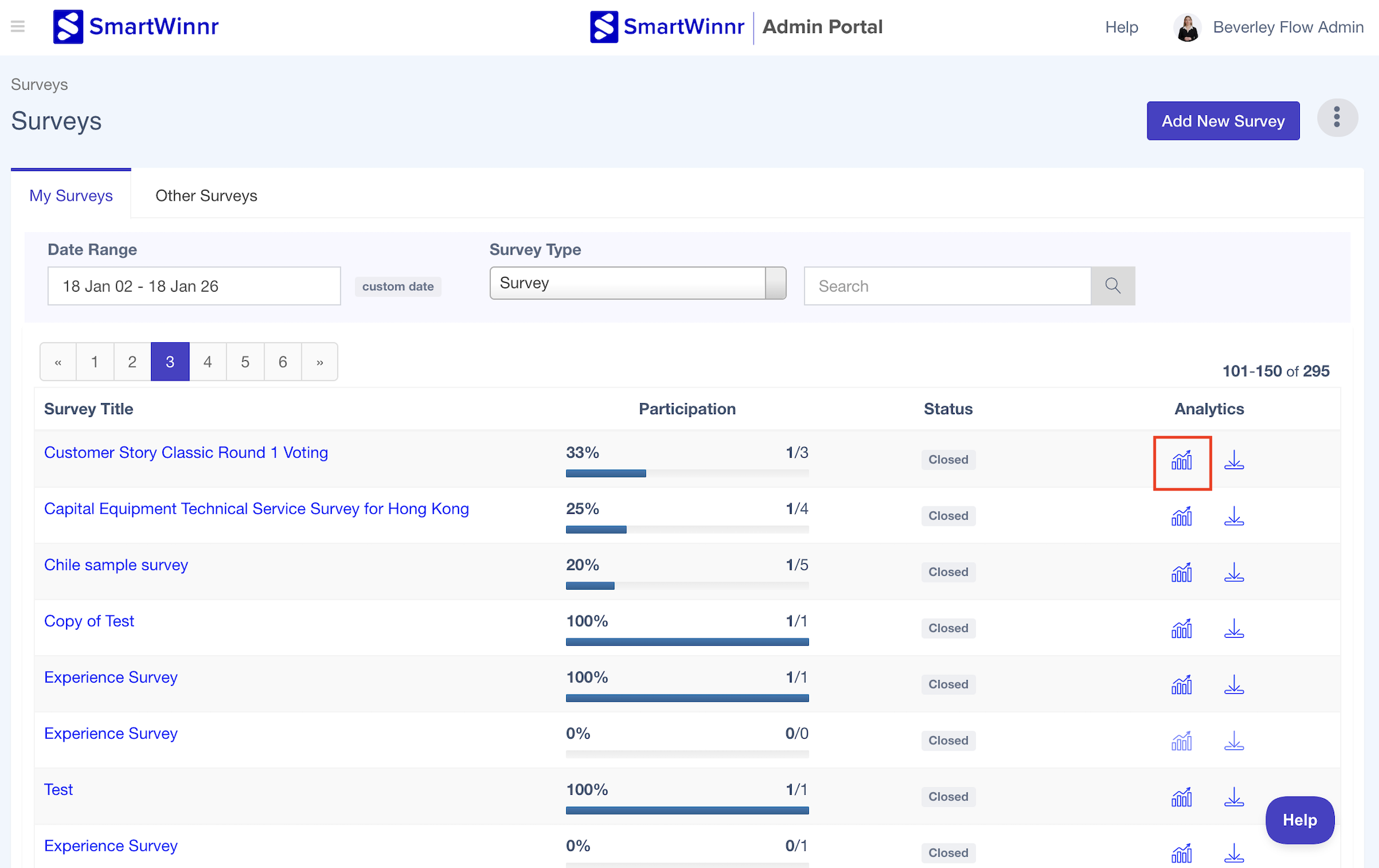 Now under Analytics, click on the analytics icon against the survey for which you want to view the analytics.