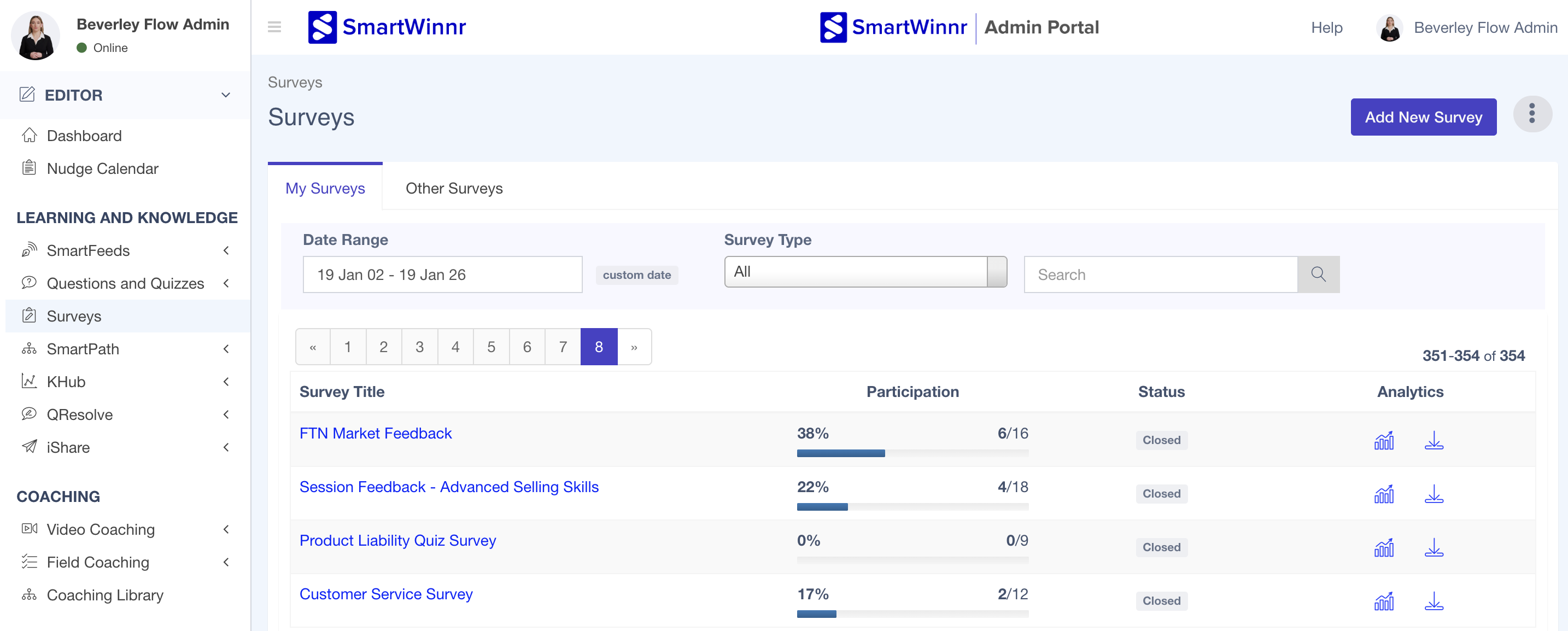 Survey Analytics allows you to monitor and analyze responses collected from your surveys. This feature provides insights into user participation and feedback patterns, enabling you to evaluate results effectively.