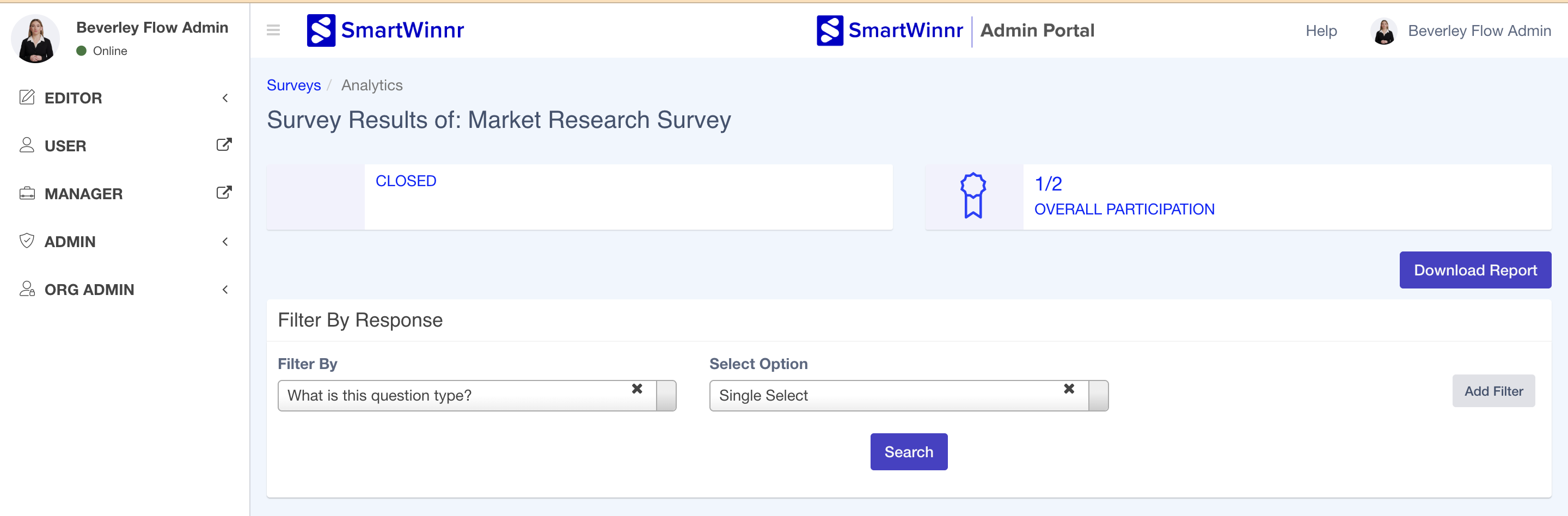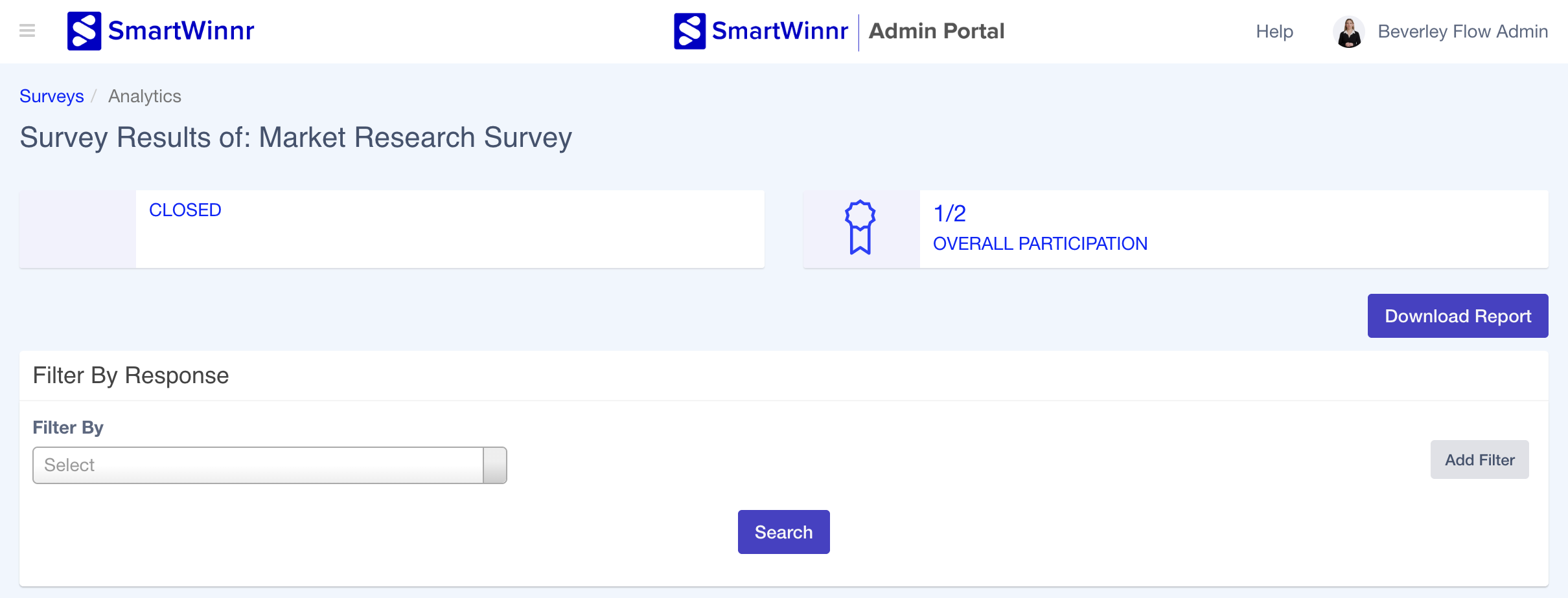 You will be taken to the following page, where the analytics of the selected survey is displayed.