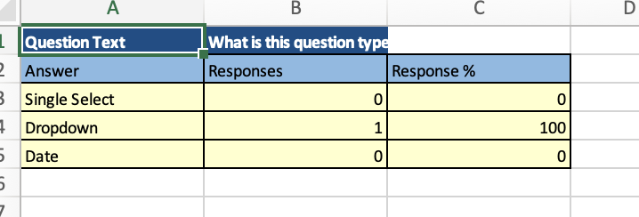This type of report consists of the survey question, responses, and percentage of response for each answer.Click on the Download Report Button which is present towards the right corner. The report will be downloaded as an excel sheet.