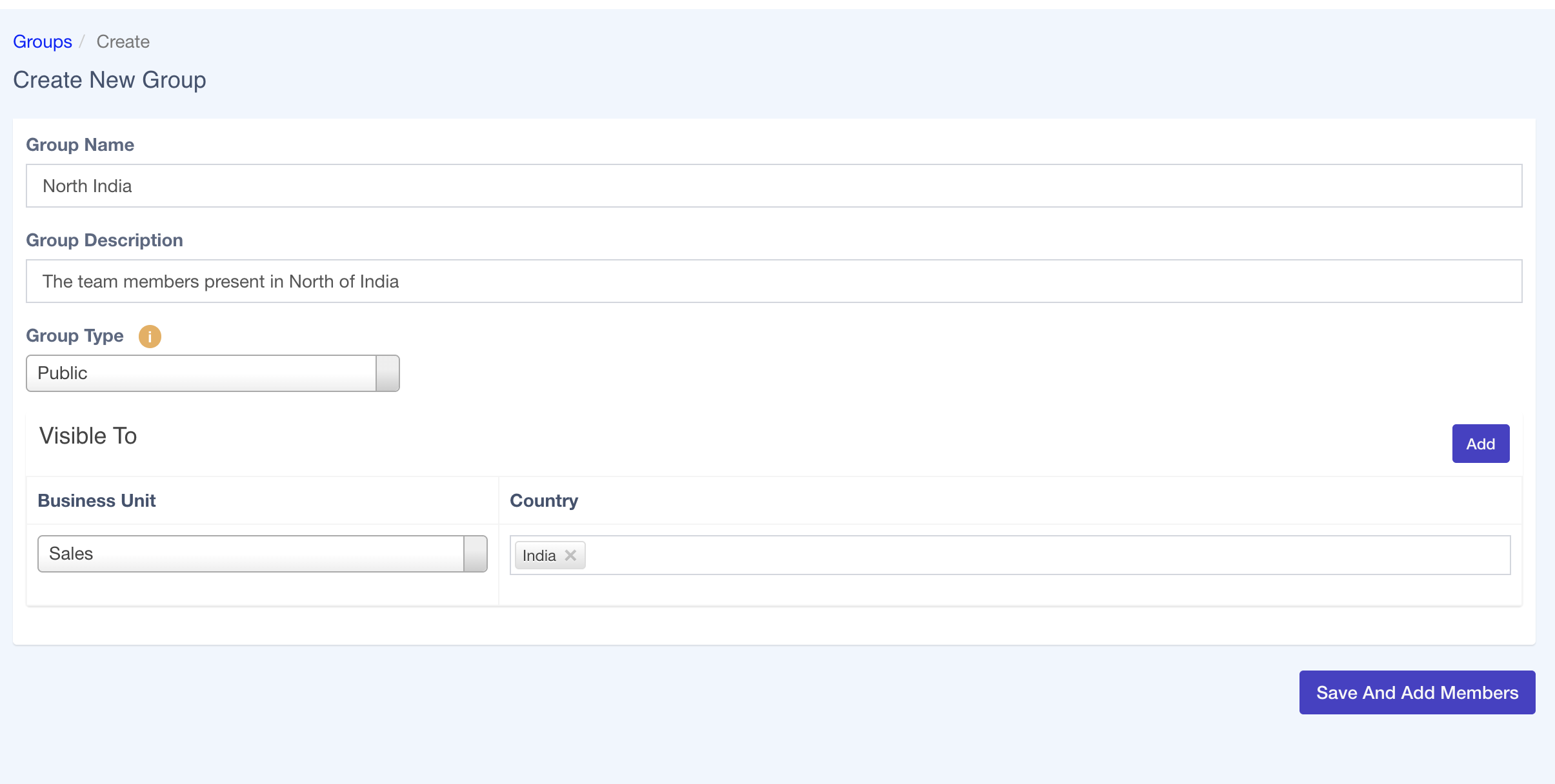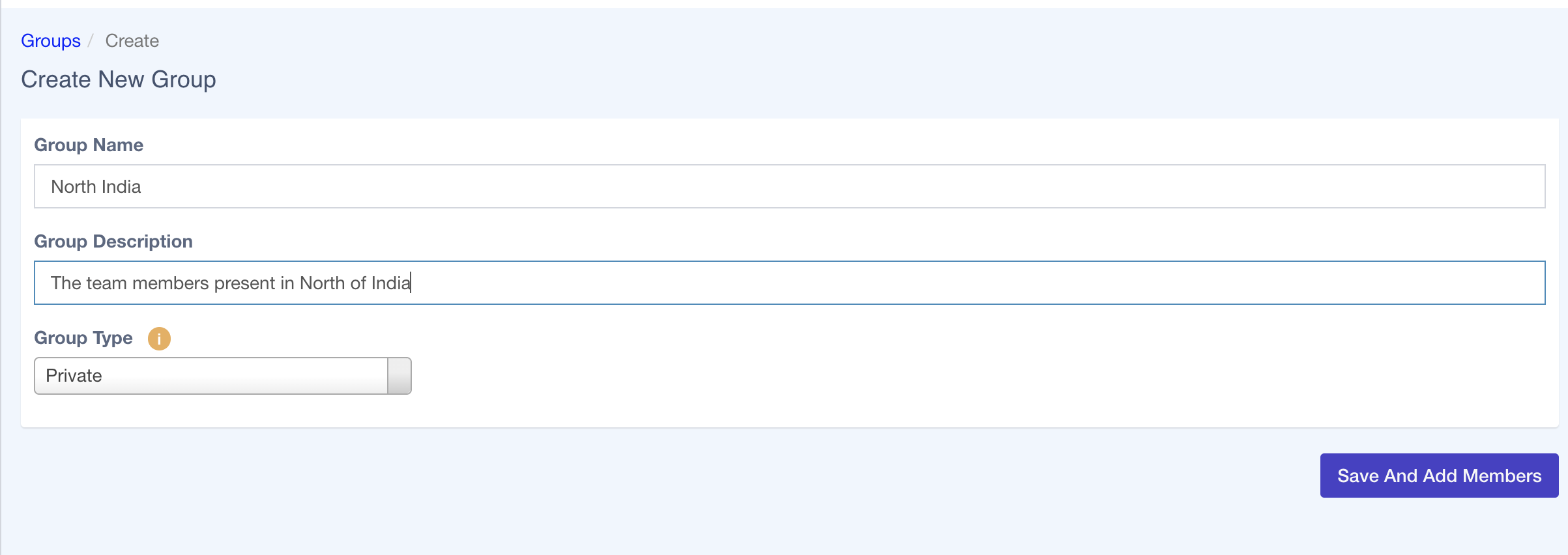 Once you have added the required details to create a group, click on the ' Save And Add Members' button.