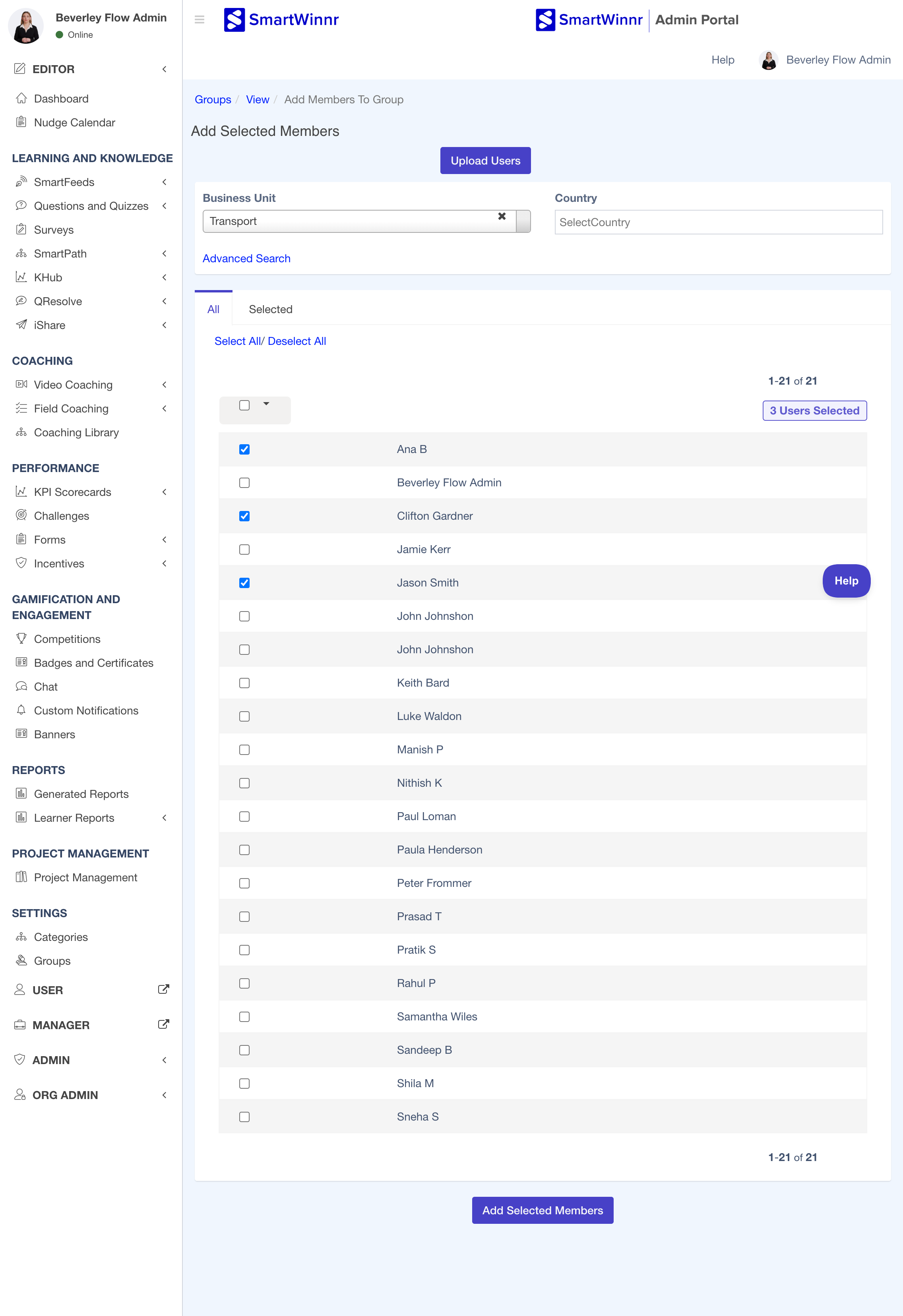 Now, in the next step, add members to this new group. You can select members through the Search/Advanced Search given in the selection screen. Once you have made the necessary selections, click on ‘ Add Selected Members’ button at the bottom of the screen.