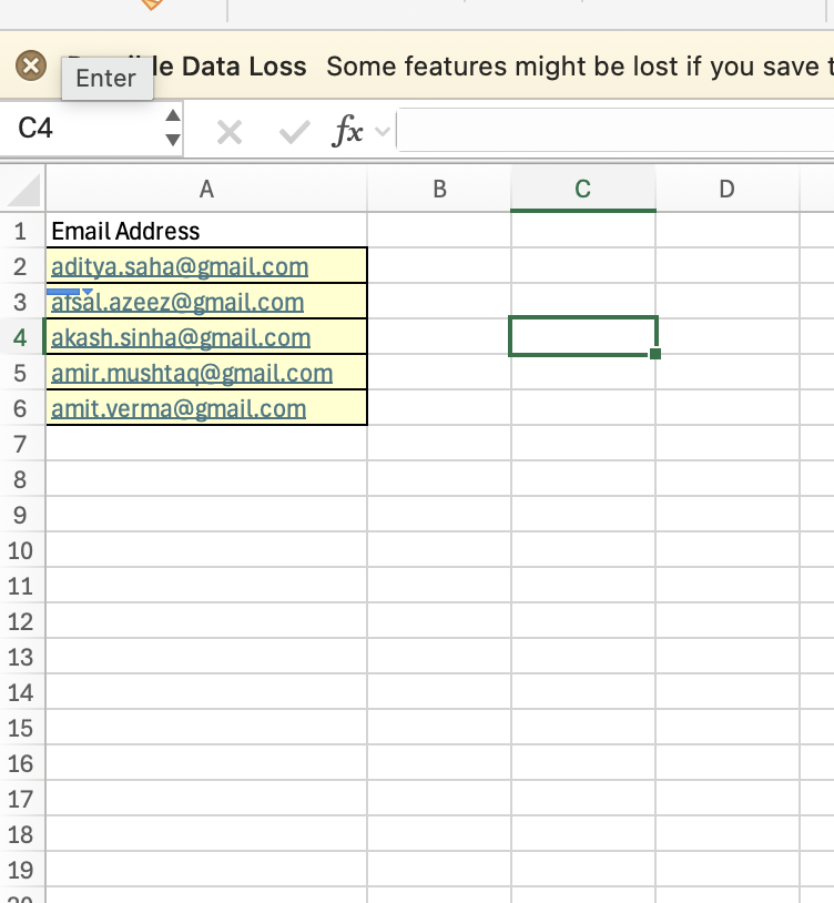 - Open the downloaded template and fill in the required user email IDs or user identifiers.