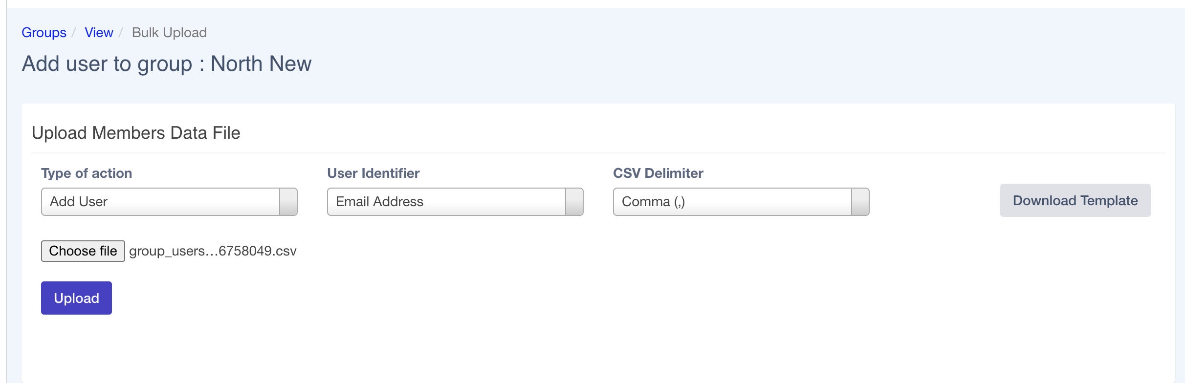 - Follow the same steps by downloading the template, entering the user details, and uploading the CSV file.