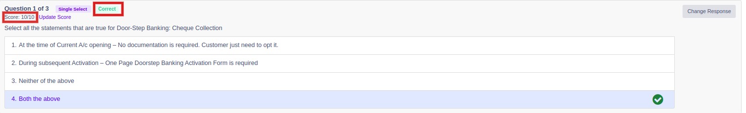 Then the response will be updated successfully along with the score as given below.