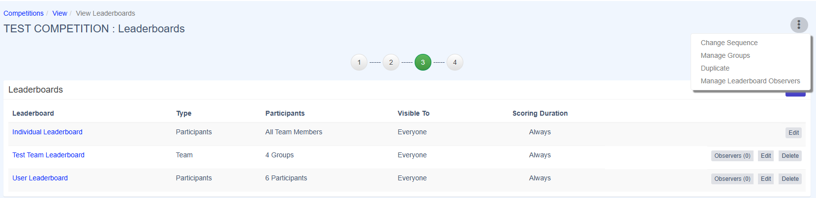 Once saved, the selected observers will be displayed on the Observers button corresponding to that leaderboard.