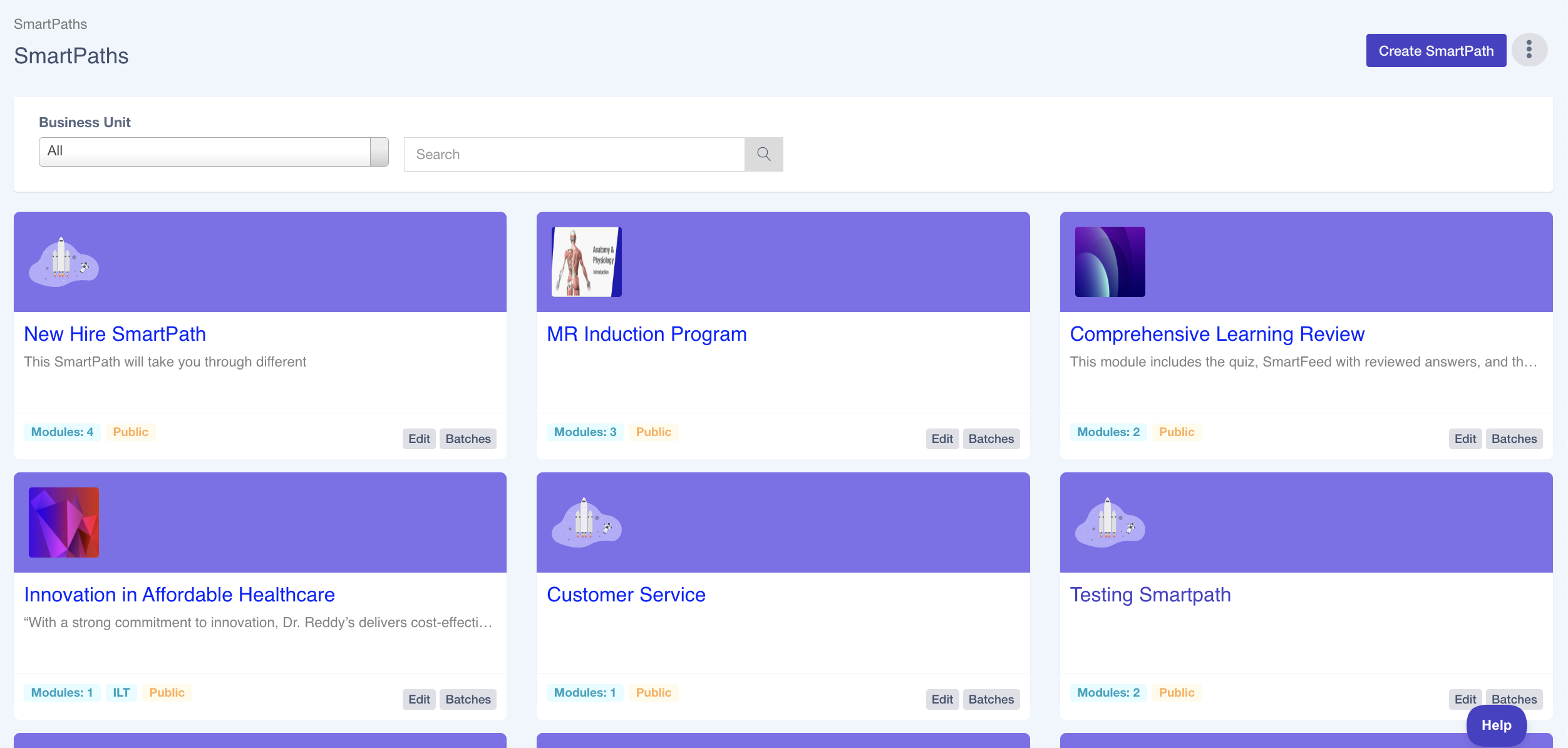 - Go to EDITOR > LEARNING AND KNOWLEDGE > SmartPaths > View All SmartPaths.