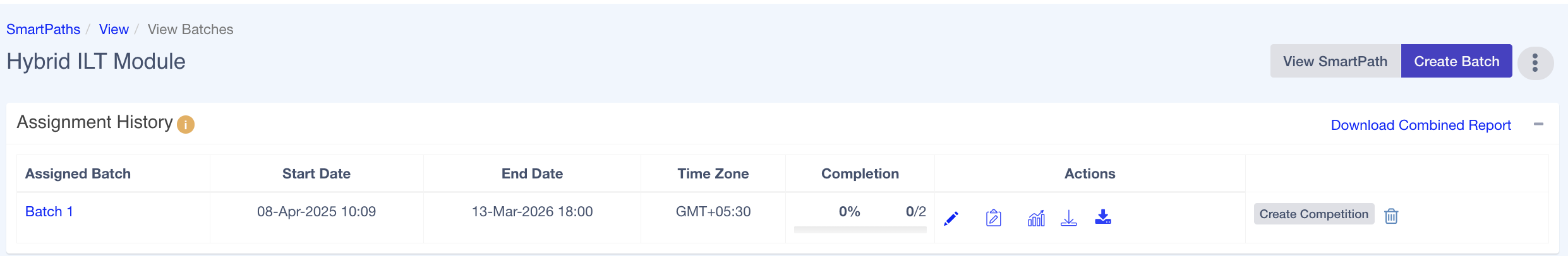 - On the particular SmartPath card, click on the 'Batches' button at the bottom right corner. Alternatively, you can click and open a particular SmartPath and then click on the 'View Batches' button at the top right corner of the screen.