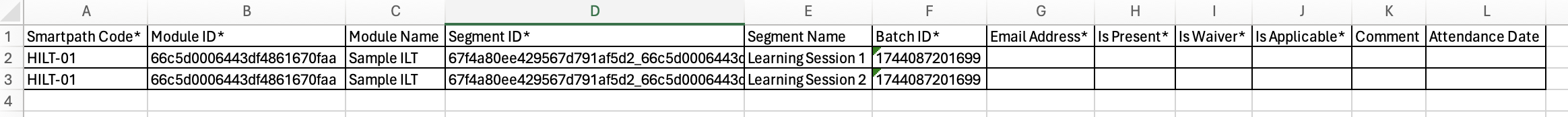 - Email Address : Email ID of the learner whose attendance is being updated.