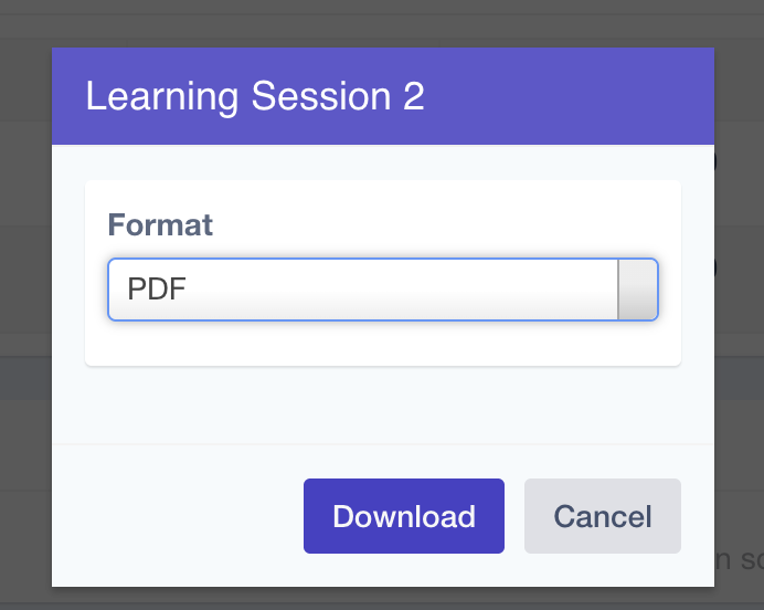 - Goto the learning session details. Against each learning session, you can find the option to download the QR code, under Action column, for the session. You can download the QR as PDF or Image file, as per your requirement.