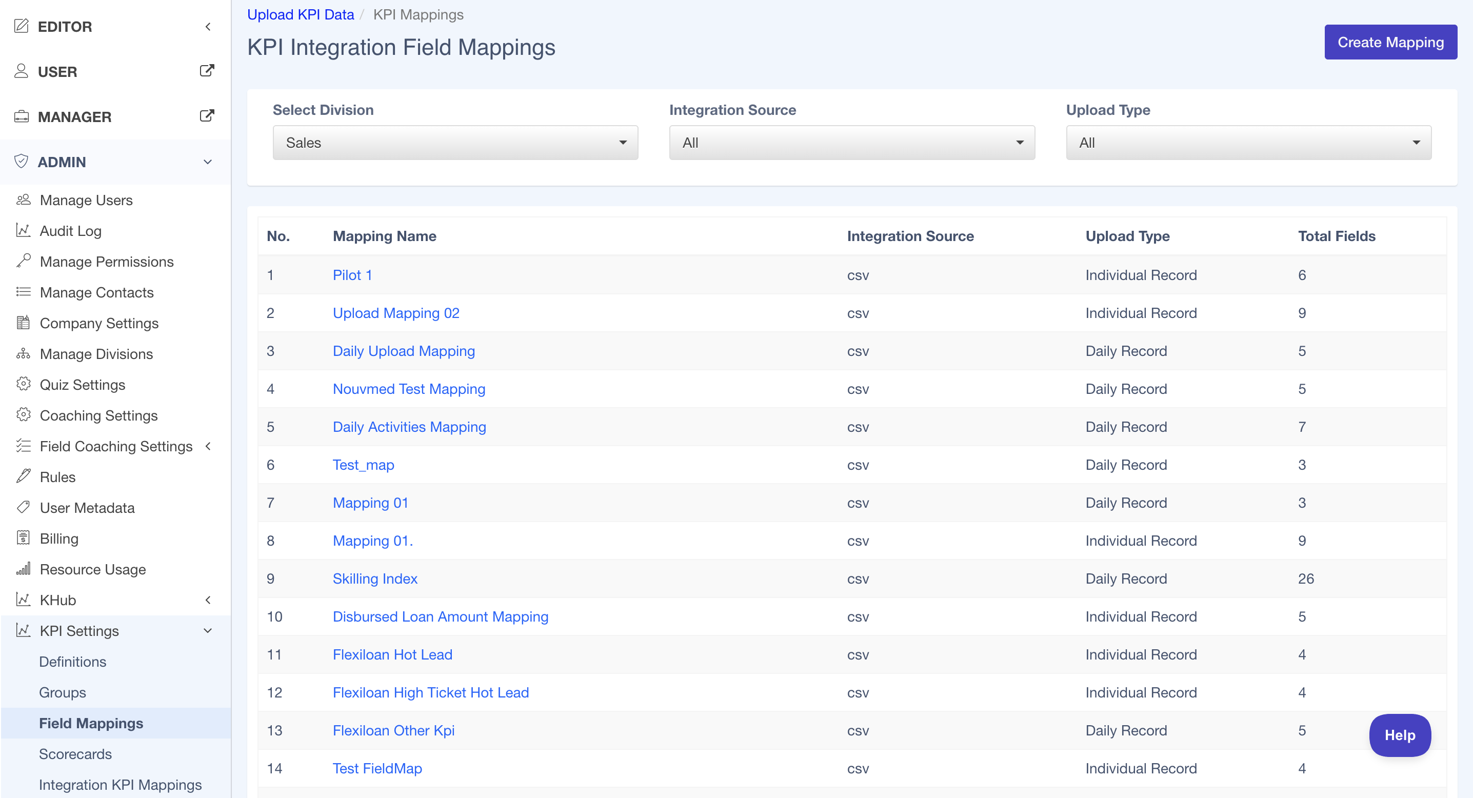 To create a field mapping, go to Admin > KPI Settings > Field Mappings.