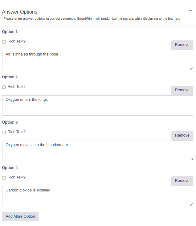 You may also enhance each answer option by adding rich content—such as images or videos—using the Rich Text editor provided for each option.
