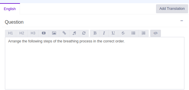 Enter the answer options in the correct sequence for the Reorder question. It is essential to enter the options in the intended order, as points will be awarded based on the sequence defined.