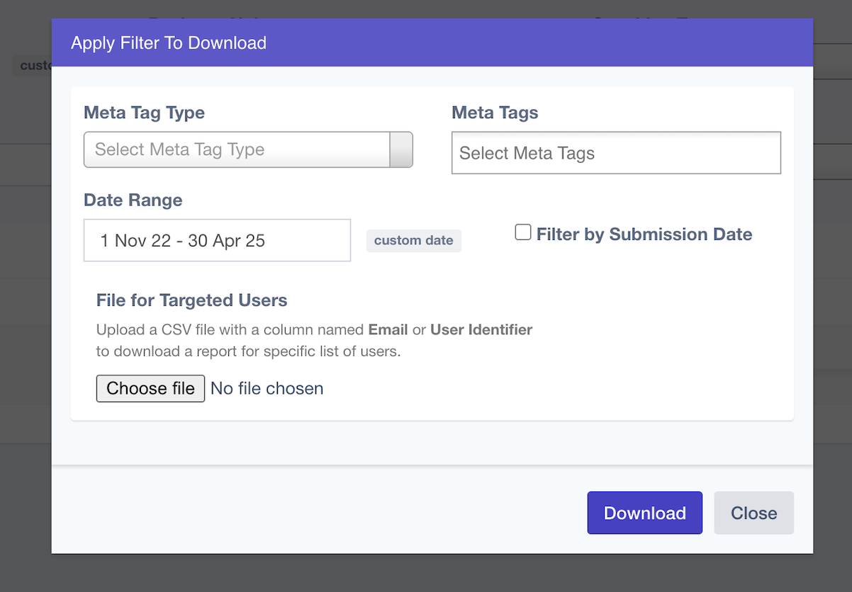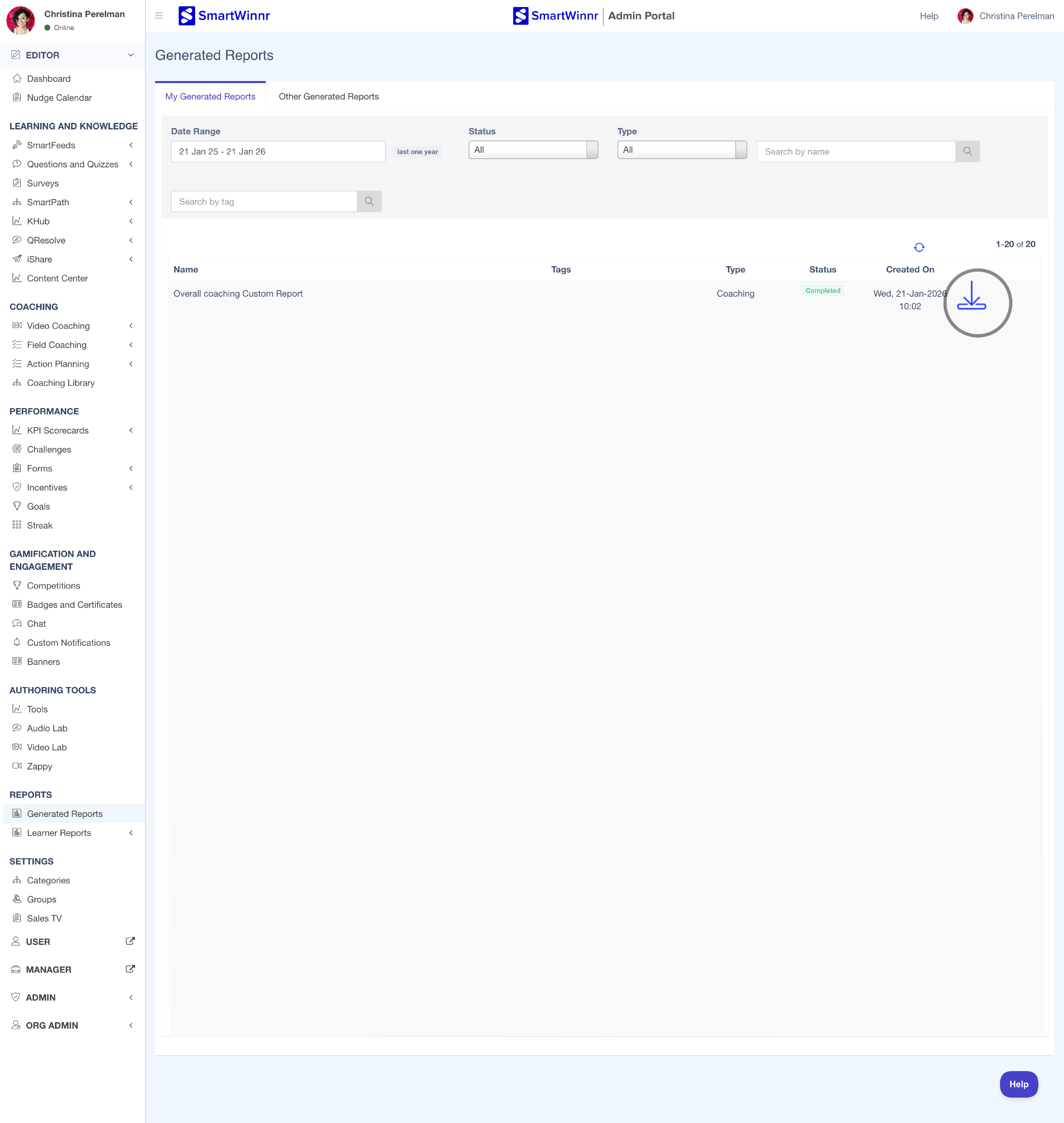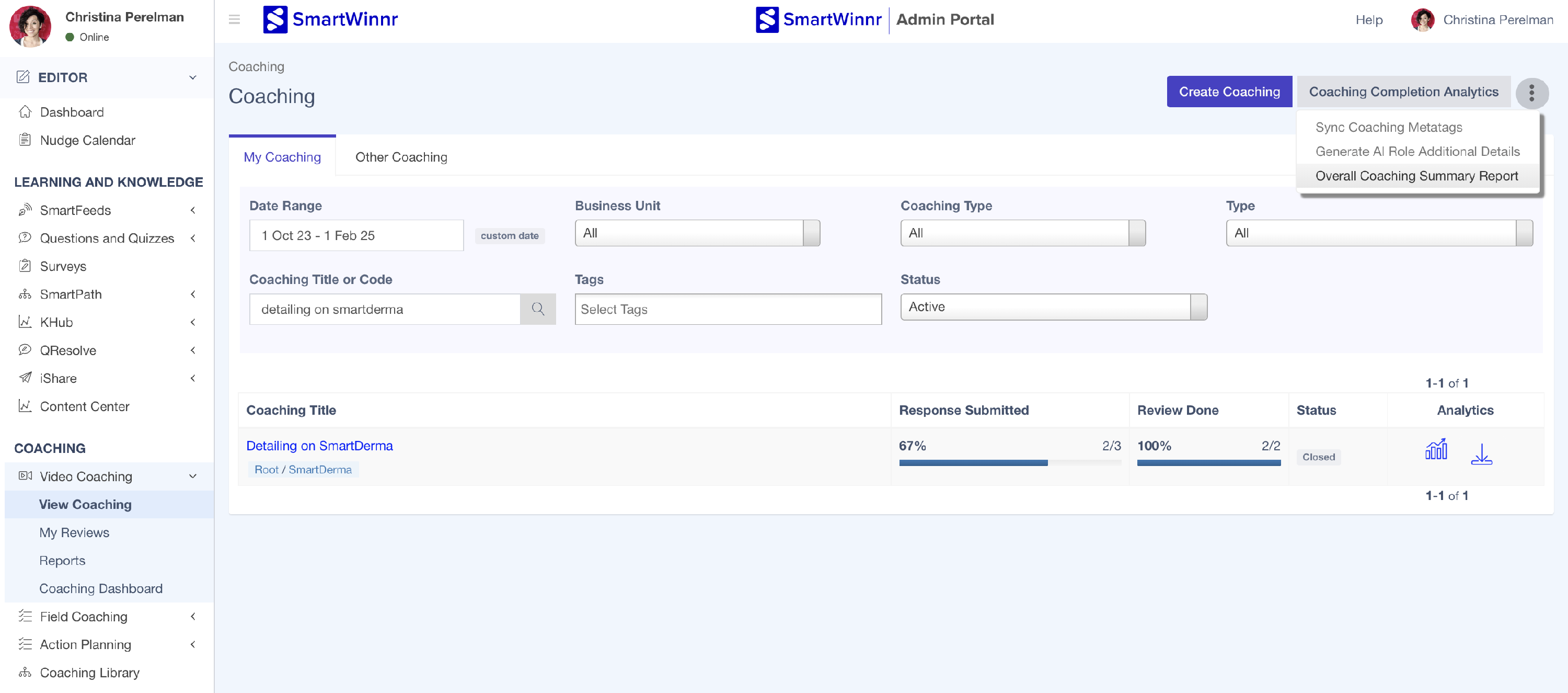 Download Overall Coaching Summary Report Apply desired filters - Metatags, Date range (if required) and Click Download