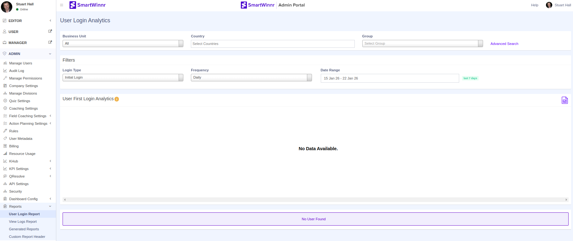 1. Navigate to ADMIN>Reports>User Login Report and it will take you to the below page.