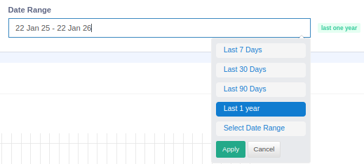 You can select the reporting frequency—Daily, Weekly, Monthly, Quarterly, or Annually—to view analytics based on the chosen interval.