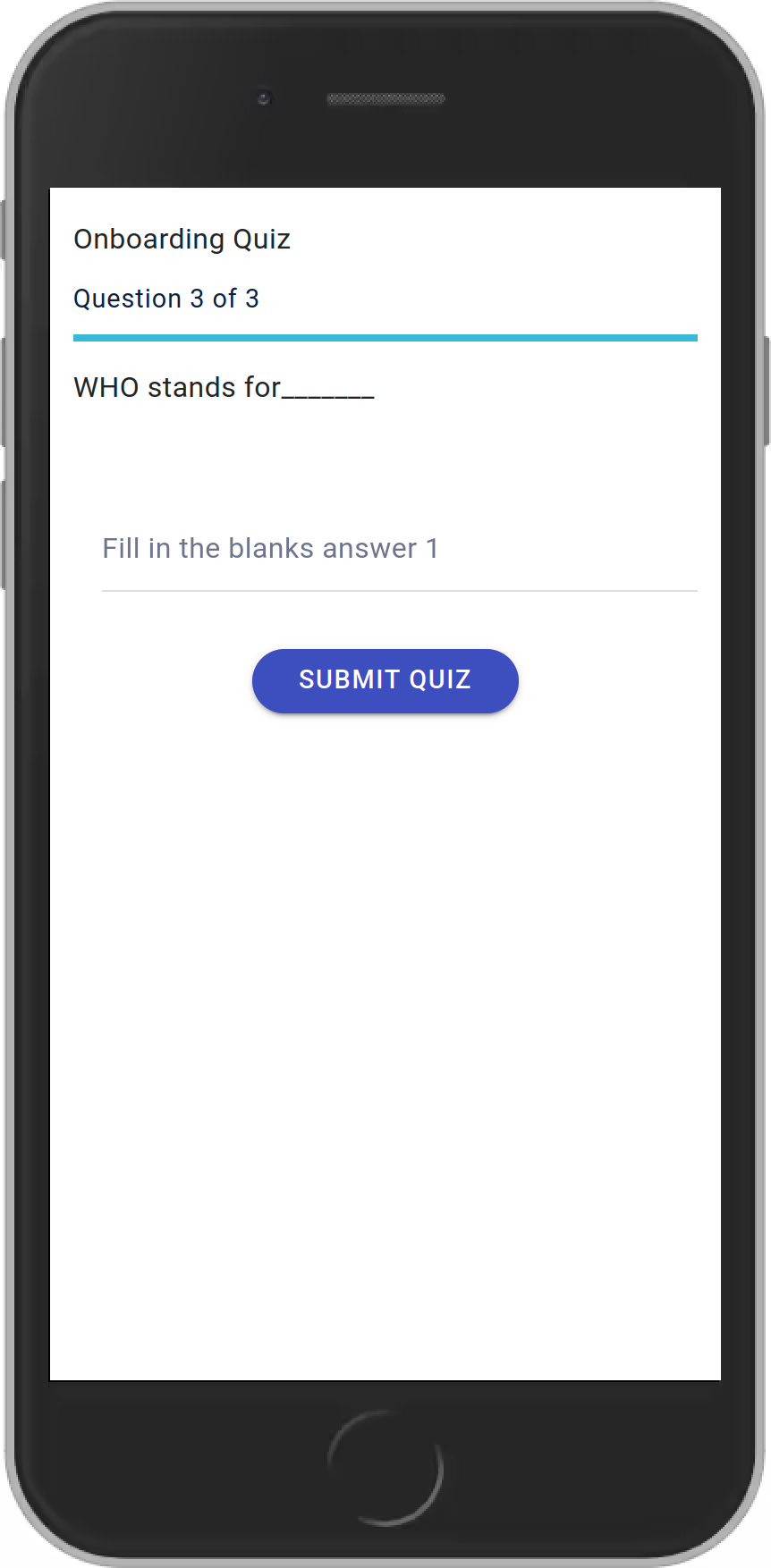 The fill-in-the-blanks question allows participants to write text answers. Please note that the answers given by the participants need to exactly match the answers given in the question.