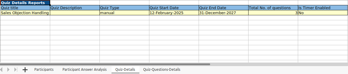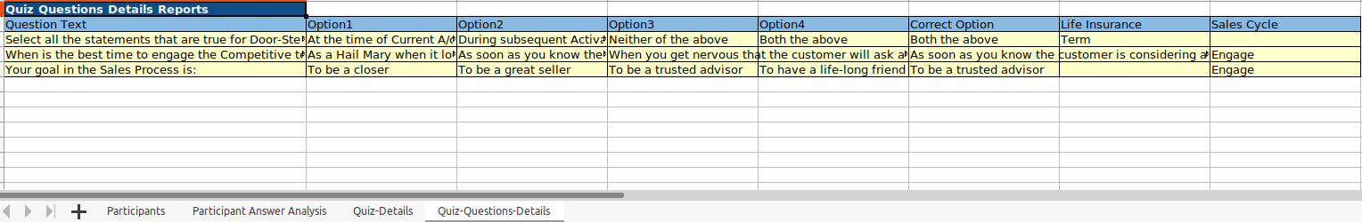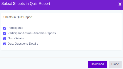 - Download report – This will give you a detailed report on the quiz in an Excel format.