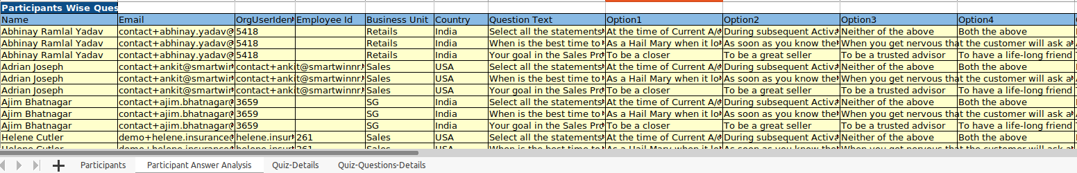 SmartWinnr provides a very detailed set of analytics on every quiz that you have created and assigned to people.